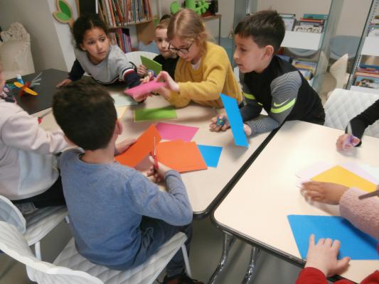 Vendredi après-midi, les élèves de CP de l'école Jacques Prévert ont rencontré Elo, illustratrice, à la médiathèque Jean de la Fontaine. Après un moment d'échanges où ils ont posé plein de questions sur le métier d'auteur et d’illustrateur, Elo leur a proposé un atelier de fabrication de mobile. Ils ont créé des oiseaux multicolores qui égayeront la médiathèque Jean de la Fontaine avant de joindre leur classe.