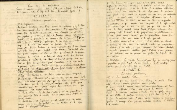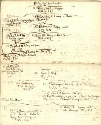 La médiathèque de Saint-Dié-des-Vosges reçut, en 1955, en dépôt fait par la Sorbonne une partie des archives personnelles de Jules Ferry. Dans ces archives se trouvent notamment des carnets de notes alors qu’il était étudiant à Strasbourg et à Paris (entre 1846 et 1853). Sont ici présentés des extraits de ces notes issues de cours d’histoire et de cours de droit. On reconnaîtra notamment l’arbre généalogique des rois carolingiens exécuté de la main de Jules Ferry.